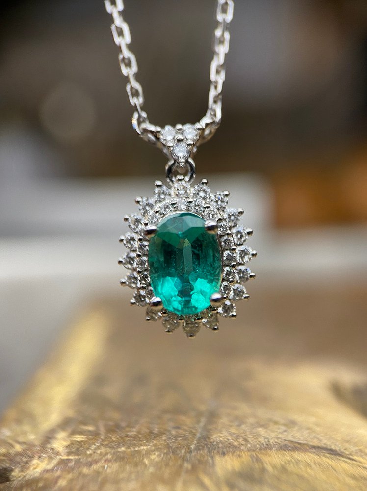 1.01 carat Natural Emerald. Diamond. 18K Gold Necklace. Luxury packaging included. We can make a free customized 3D drawing based on this design and your wishes. Please contact us below. Also if you require advice from our experts.