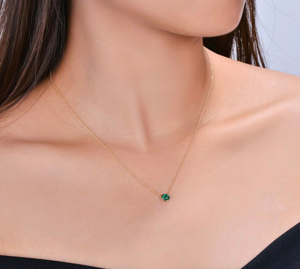 Natural Malachaite. Diameter 6mm. 18K Gold Collier. Luxury packaging included. We can make a free customized 3D drawing based on this design and your wishes. Please contact us below. Also if you require advice from our experts.