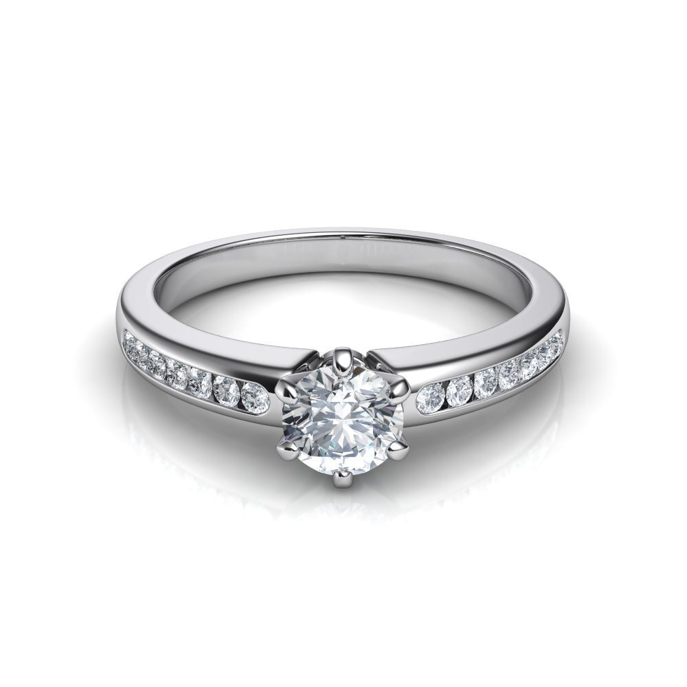 0.30 carat H VS2 triple excellent none fluor. GIA certified round diamond. 18K Gold. 0.20 carat G VS side diamonds. Diameter main diamond ~4.3mm. GIA certificate and luxury packaging included. We can make a free customized 3D drawing based on this design, your ring size and your wishes. Please contact us below. Also if you require advice from our experts.