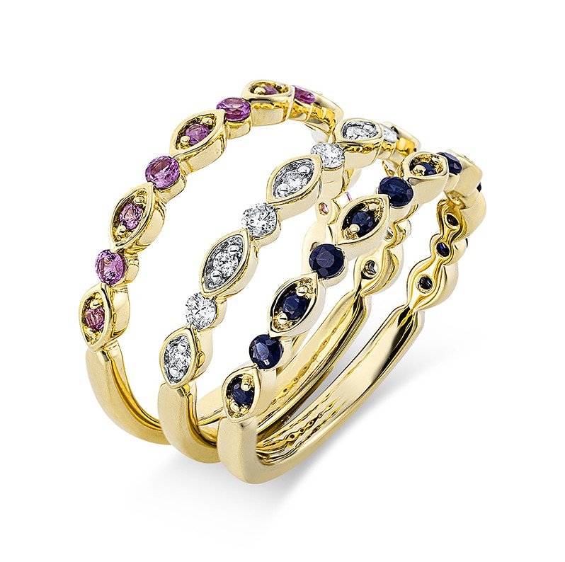 This is a configurable ring set. Both the width and the profile can be chosen. The set shown has the following specifications: Weight around 14 grams .18K white gold. 18K yellow gold.0.18K rose gold. 950 Platinum . 0.07 carat diamond. G color. VS clarity. Excellent cut. Width 5 mm, Height 1.8 mm. Luxurious packaging included. We can make a free customized 3D drawing based on this design, the ring sizes and your wishes. Please contact us below. Also if you require advice from our experts.