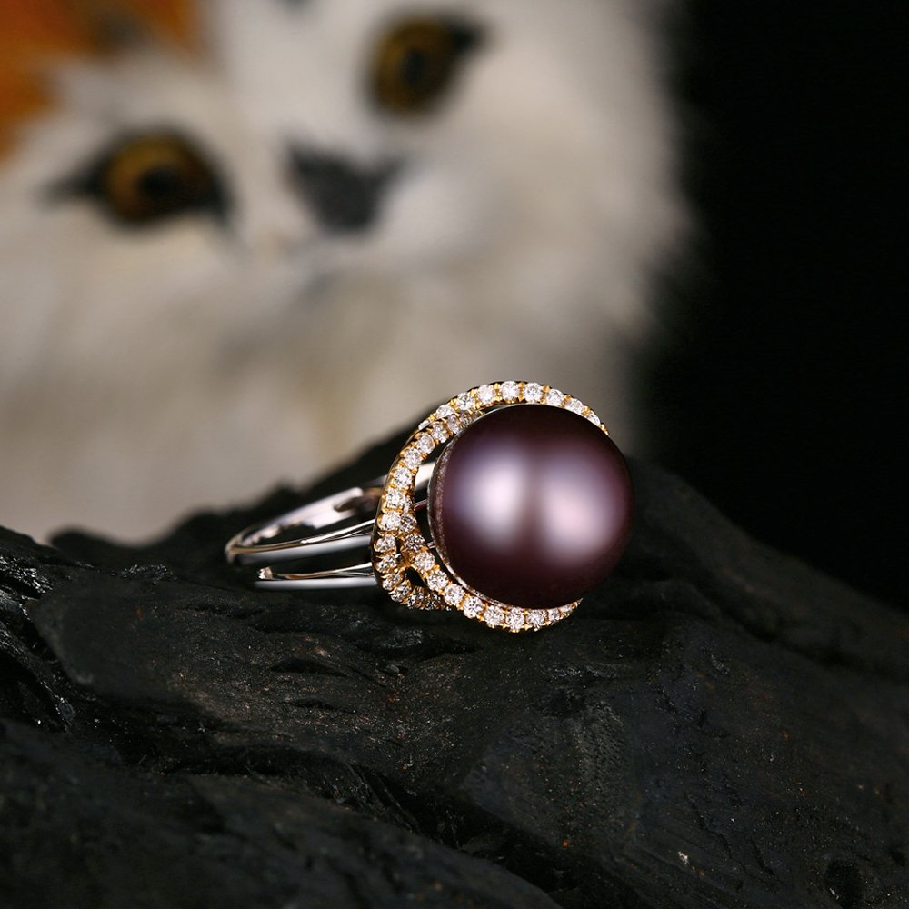 12-13mm diameter natural pearl. Diamond. 18K Gold Ring. Luxury packaging included. We can make a free customized 3D drawing based on this design, your ring size and your wishes. Please contact us below. Also if you require advice from our experts.