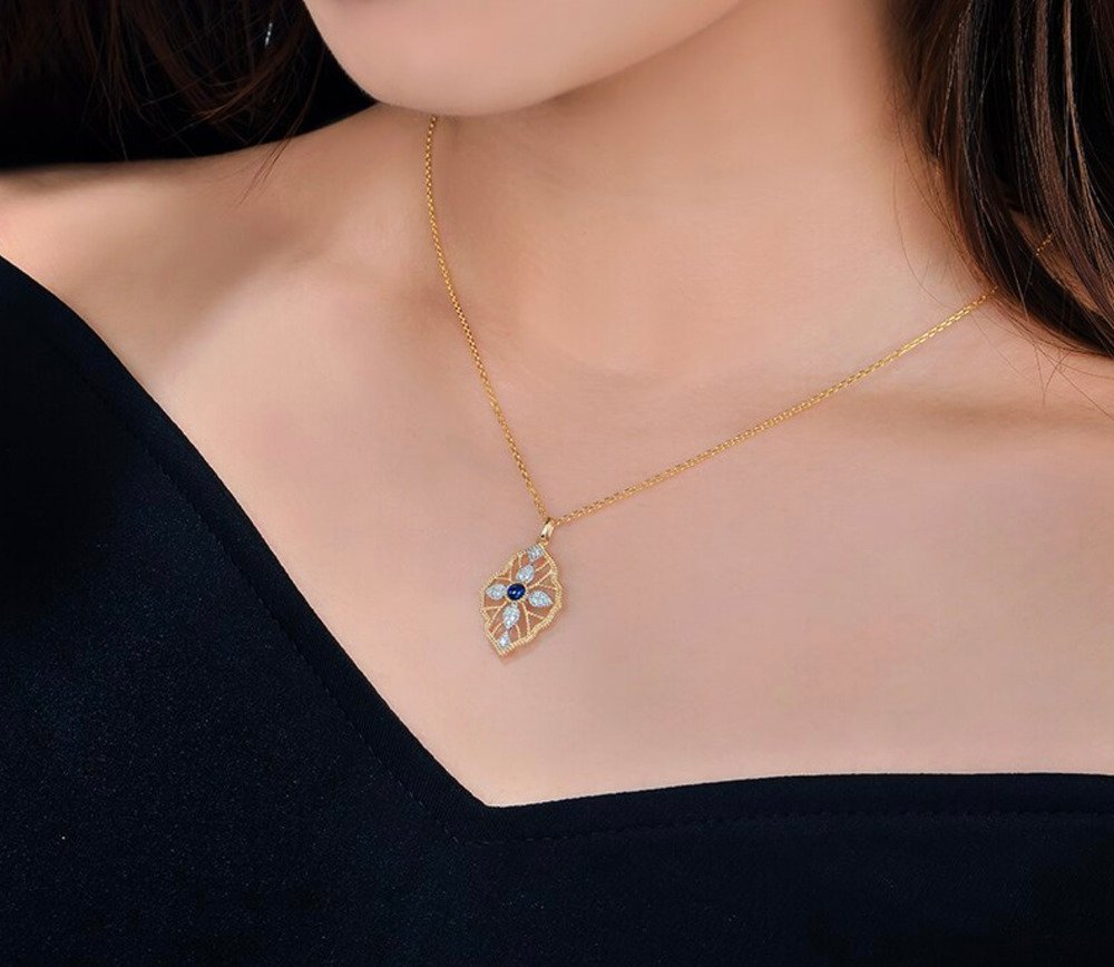 0.25 carat Natural Sapphire. 0.11 carat Diamonds. 18K Gold Collier. Luxury packaging included. We can make a free customized 3D drawing based on this design and your wishes. Please contact us below. Also if you require advice from our experts.